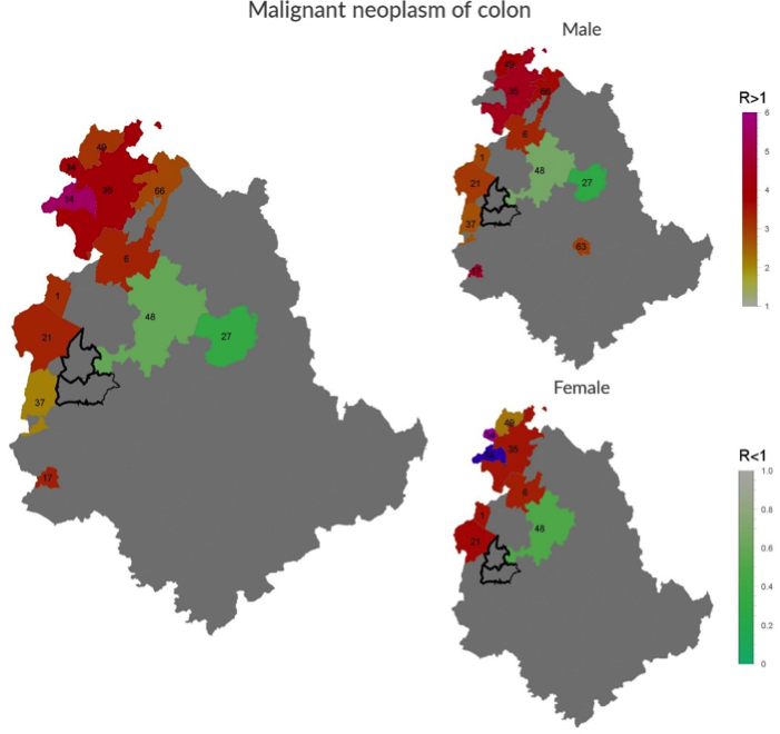 For the overwhelming majority of the diseases, there was no significant difference in excess or defect. Overall, these data suggest the absence of local factors impacting on the health status of residents.