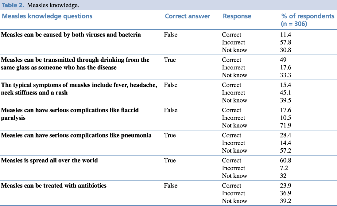 Table 2. Measles knowledge.
