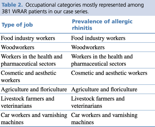 Table 2. Occupational categories mostly represented among 381 WRAR patients in our case series.