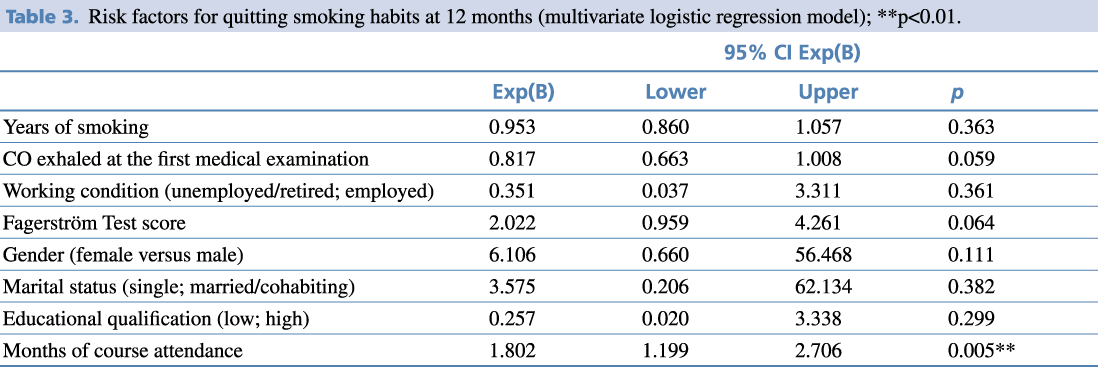 Table 3. Risk factors for quitting smoking habits at 12 months (multivariate logistic regression model).
